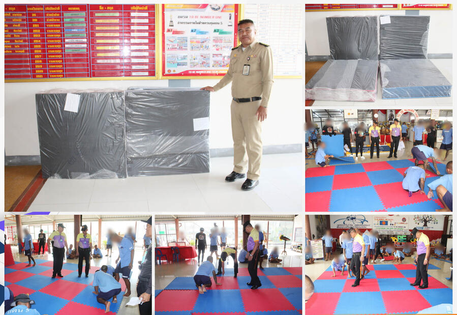 On February 11, 2025, Mr. Kritsana Thipyachan, Commander of Rayong Central Prison, along with the prison's executive team, received support from Ms. Chonmanad Vahey of RHLS HOLDING Company. The company donated interlocking floor mats for Muay Thai boxing equipment to the "Muay Thai TO BE NUMBER ONE" club of Rayong Central Prison, Zone 5 Control Area. These mats are intended for use in Muay Thai training and to prevent accidents during practice sessions. Mr. Rojanasak Asaban, Head of Zone 5 Control Area, accepted the donation. Mr. Kitti KaewSaen, Head of Zone 5 Control Work, and Zone 5 staff oversaw the assembly of the interlocking floor mats.