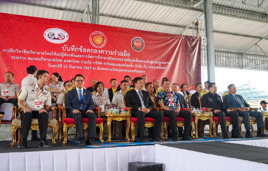 On Friday, September 13, 2024, at 09:00 AM, the Department of Corrections held a Memorandum of Understanding (MOU) signing ceremony for the "Correctional Thai Boxing Management Project to Elevate Standards to the International Level." The ceremony was conducted between the Muay Thai Association Thai Heritage and RHLS Holding Company Limited.The ceremony was presided over by Mr. Yusin Chintapakorn, Vice minister of justice. Attendees included Mr. Chan Wachiradet, Deputy Director-General of the Department of Corrections (Development Division); Mr. Thanawit Chaiyanupong, President of the Muay Thai Association Thai Heritage; and RHLS Holding Company Limited, who all participated in the signing ceremony held at the Ayutthaya Youth Correctional Institution.This MOU signing reflects the implementation of the policy of Police Colonel Tawee Sodsong, Minister of Justice, to drive the Ministry of Justice towards an era of "Justice for All" or "Justice Leading the Nation," focusing on behavioral development. The initiative aims to enhance the efficiency of offender correction and rehabilitation. It also drives the implementation of a sustainable behavioral development process for inmates by developing various skills during their incarceration, aligning with the Department of Corrections’ eight-dimensional management policy, which supports the transformative goals of the Director-General of the Department of Corrections, Mr. Sahakarn Petchnerin.The Department of Corrections has partnered with the Muay Thai Association Thai Heritage and RHLS Holding Company Limited to elevate and develop Thai boxing skills among inmates to international standards. This initiative creates job and career opportunities for inmates interested in Thai boxing training, enabling them to pursue Thai boxing as a profession for a new beginning. It focuses on attitude adjustment, physical and mental development, and instilling discipline. Inmates with a passion and good technique in Thai boxing can potentially progress to higher-level boxing stages, providing an additional career option upon release.Our CEO made a special visit to a prison Muay Thai gym, showing our company's commitment to supporting rehabilitation through sports. We're honored to provide Muay Thai equipment to help these athletes continue their training.